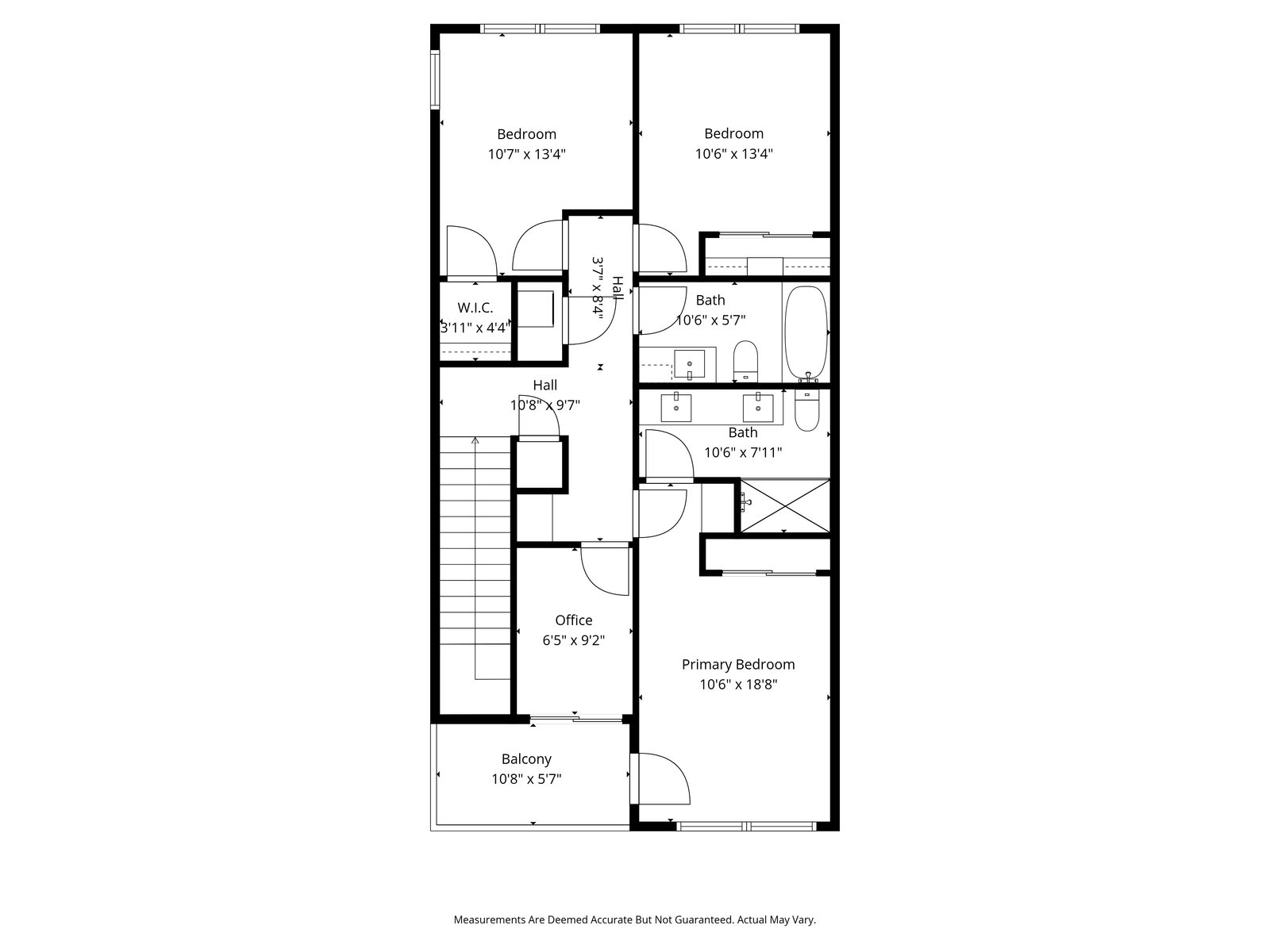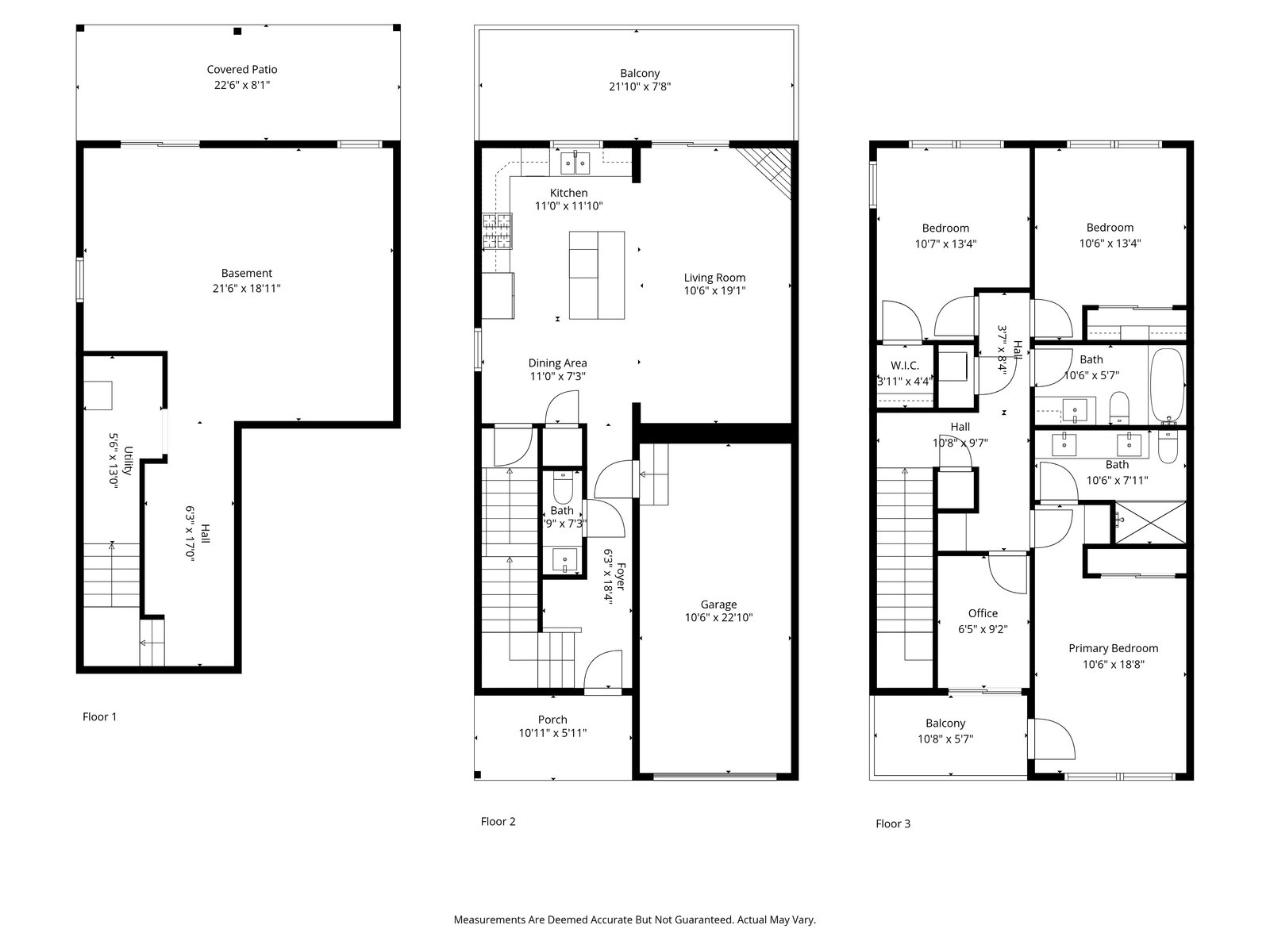 Upstairs, three bedrooms plus a dedicated office capture mountain scenery. The private primary suite includes an ensuite with quartz counters, double sinks, a walk-in shower with subway tile, and a western-facing deck for sunset relaxation.